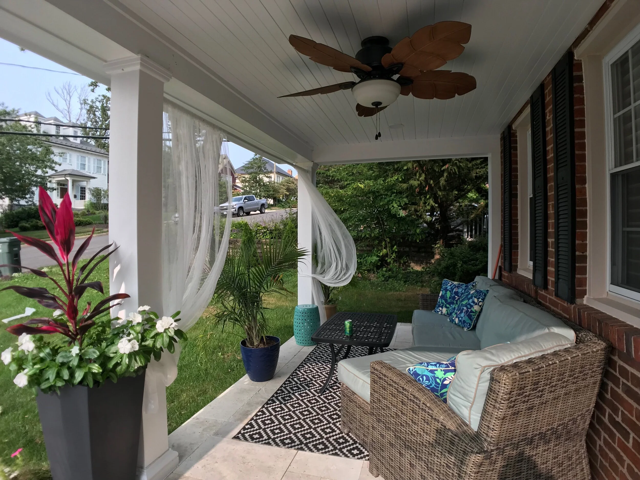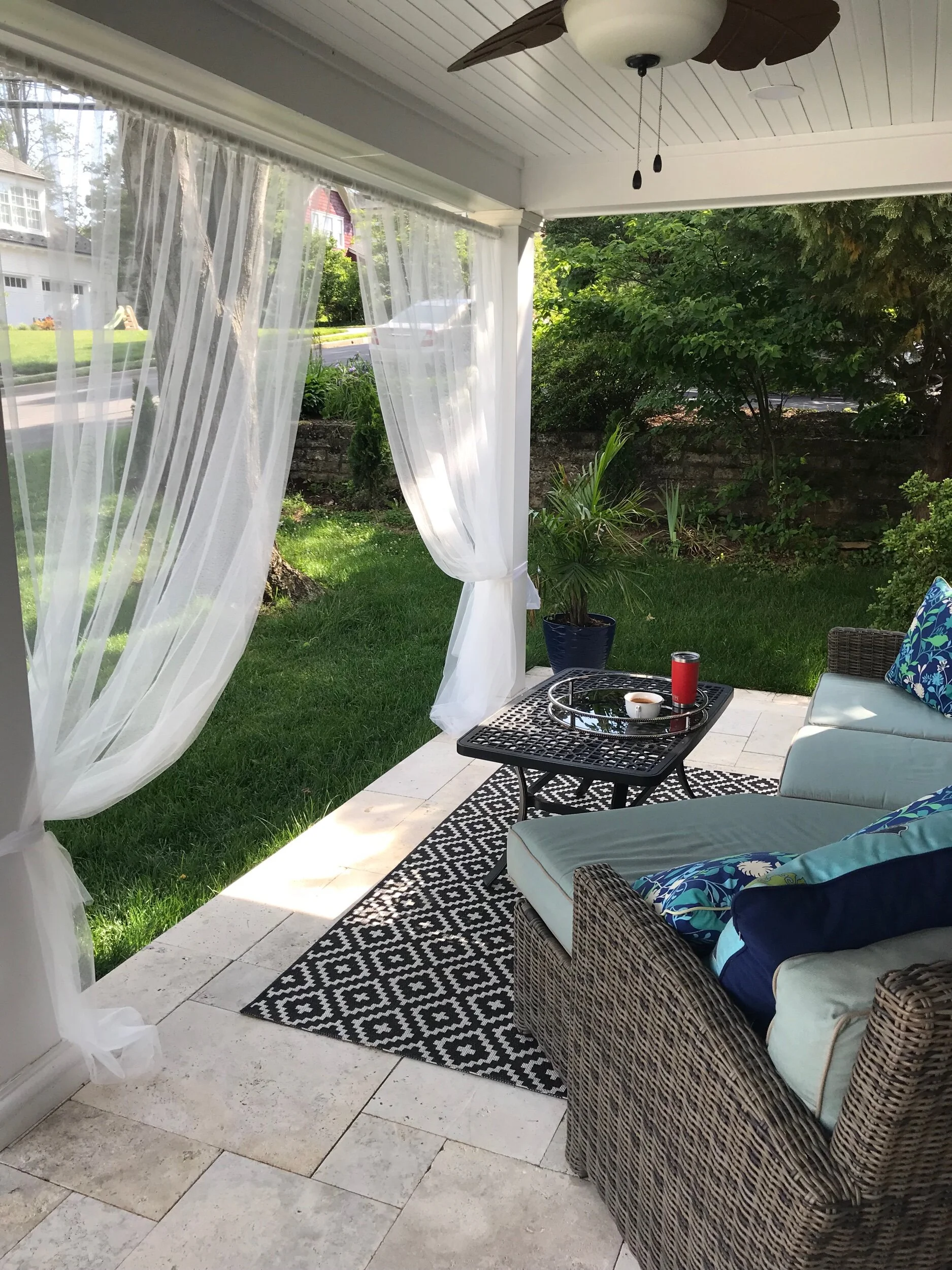 Here is an idea how to add simple mesh curtains to your porch using an outdoor curtain rod.